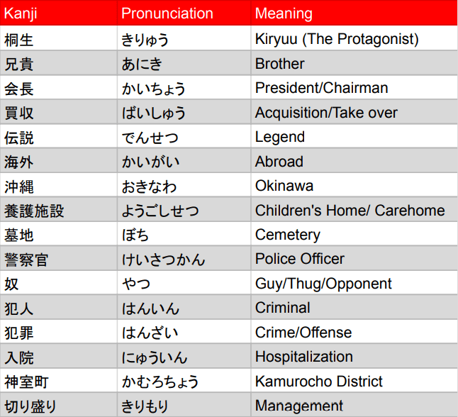 One aspect of the game you may have trouble with is the place names. Often buildings, roads and cities are mentioned but it can be difficult to pick them out of a long dialogue. As you travel around you will see the street name or region appear in the bottom right or bottom left of the screen. Make a note of the kanji and pay attention to any of the conversations around that area. If you’re lucky you will find a cutscene that mentions the place specifically allowing you to confirm the reading, but you can often get a better understanding of the written dialogue if you can grasp these place names first.