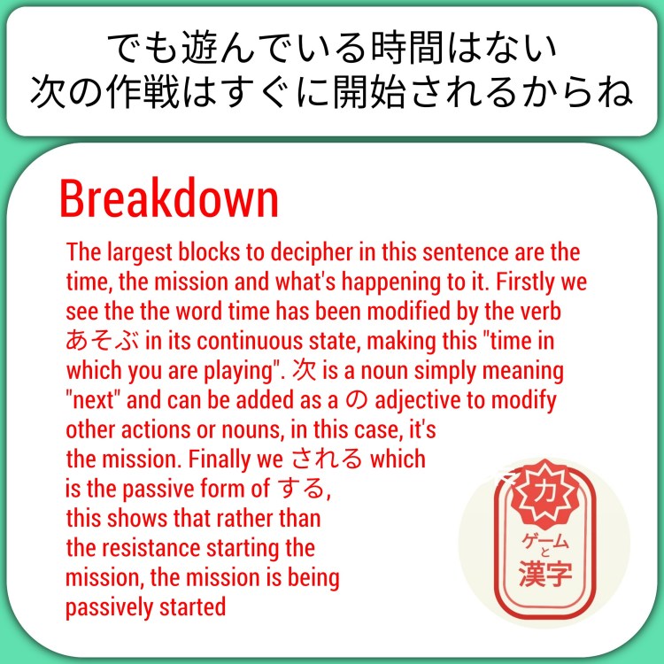 I cannot emphasize enough how funny each and every little interaction is. I found myself speaking to every character, animal or thing on screen that would give me more to read as it was all gold. See if you can speak with everyone and understand their full dialogue. If you can’t use the short text boxes to your advantage and drill each sentence or block until you become confident with it. I will 100% recommend this to any beginners to the language, or even those than fancy something light and jovial between studies.