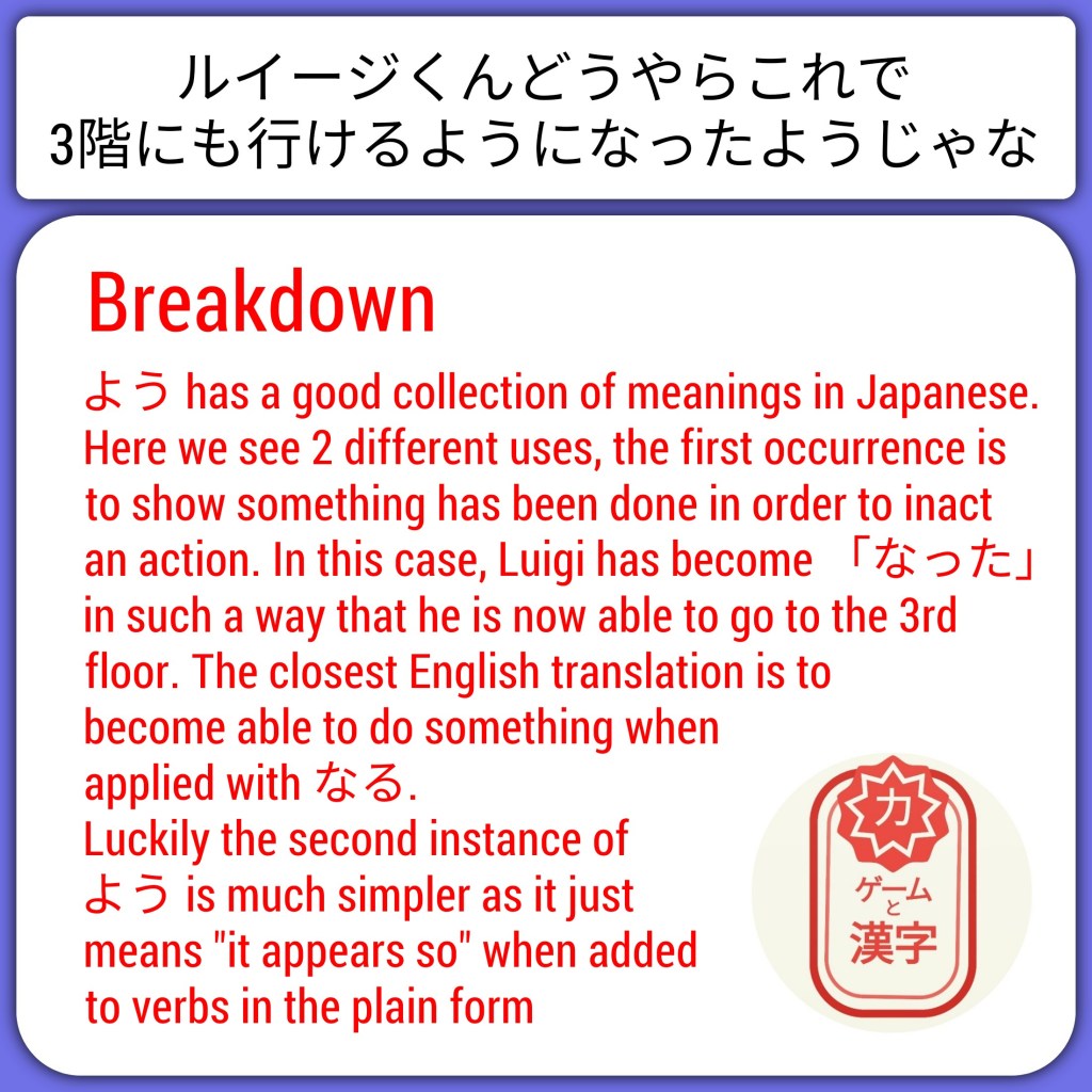 Collecting all of the collectibles in Luigi’s Mansion isn’t a very word heavy task in itself but when playing through with my partner there were occasions where we were both stumped as to how to get the gems especially when they looked so within reach. She opted to look at a regular guide online, as she doesn’t yet have the Japanese learning bug, but it gave me the idea to look for an effective guide written in Japanese to use alongside the game.
