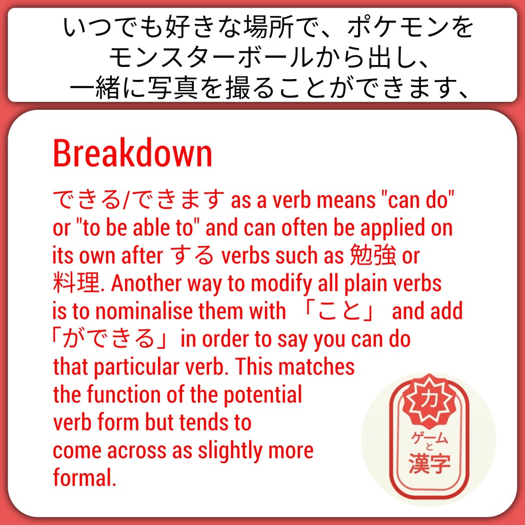 By the very nature of Pokémon games, you can expect a lot of repetition when it comes to capturing, battling and raising your Pokémon. This comes with a myriad of advantages, mostly relating to what I would call “Metric vocabulary”. This would be items such as “this Pokémon has been caught”, “that wild Pokémon has appeared” and the usual stats including size, weight and characteristics. The vocabulary found from these menus isn’t overly vast and can be learnt relatively quickly. These items also use beginner to intermediate language and grammar so is beneficial to early learners.