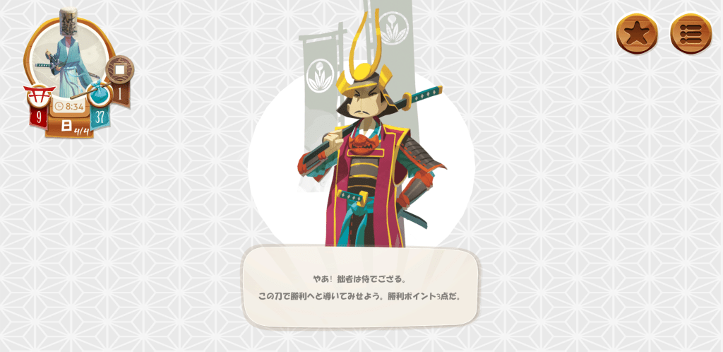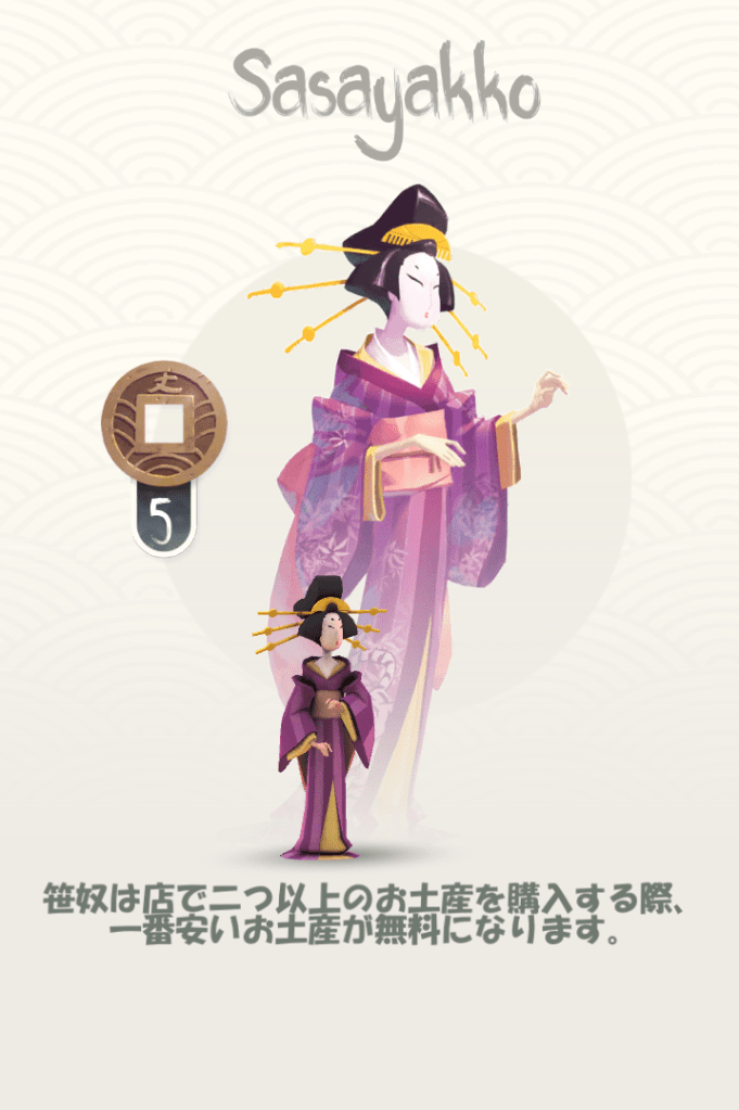 The benefit to Tokaido’s brevity is that you could genuinely spend an afternoon and learn all of the vocabulary. I struggled to put together a glossary for this game, not because the language was difficult but because there was so little of it. By learning a few tens of words and playing a couple of rounds you will mostly be caught up and able to read along comfortably which would give a feeling of satisfaction for anyone who enjoys completing or mastering a game. For beginners in particular this is an opportunity to delve into a game and fully understand all that can be found within a short space of time. Also, items such as the random encounters and the character skill descriptions hold comparatively more usable grammar and terminology making them worth your while to invest time into. I am obviously quite stringent with this game as my goal here is to find and use as much language as possible however I feel that Tokaido has a place in your phone because of its simplicity. This is a title where you can play 2 or 3 complete rounds in a short commute or you could even play with your friends online and learn together (in multiple language simultaneously, I might add).