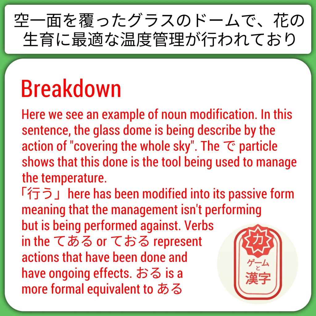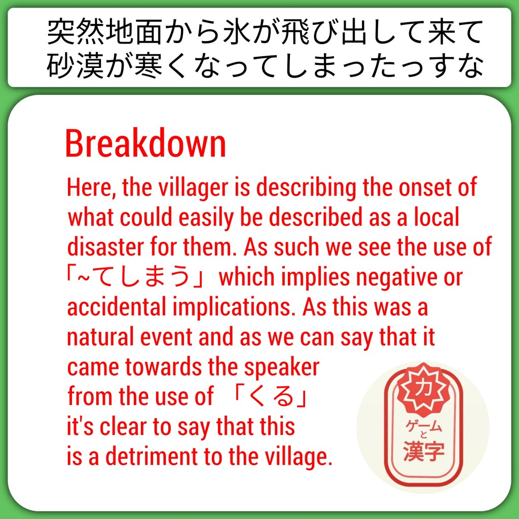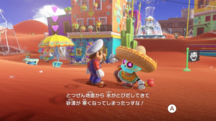 In each world you can find a specially themed Crazy Cap store where you can buy outfits for Mario (a new and very welcome feature) and souvenirs to decorate your Odyssey ship with. Both feature a brief description with the souvenirs boasting more freeform and advanced grammar. The change in locale also affects the topic of the language in these descriptions making for a good balance of kanji and vocabulary that other more objective based lists don’t offer all the while providing a common thread for related items.