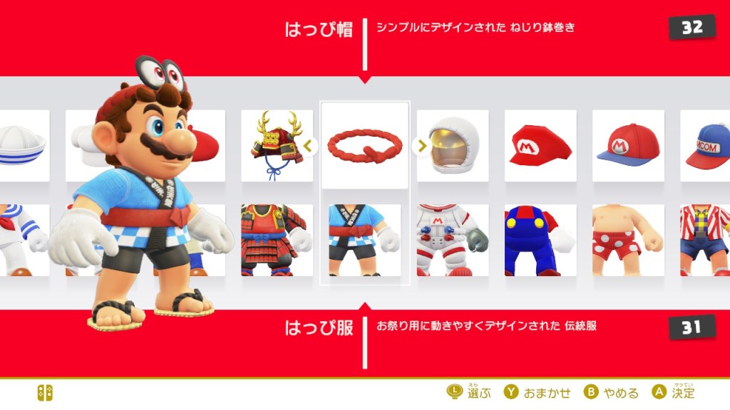 As mentioned above, each Kingdom you can visit features a selection of regional outfits and souvenirs as well as an open pool of Nintendo’s historical and randomly themed suits. All in all there are well over 150 items with their own unique descriptions. Take the time to learn from each entry and memorize the vocabulary and, if possible, see if you can read from start to finish without faltering on any words or readings.