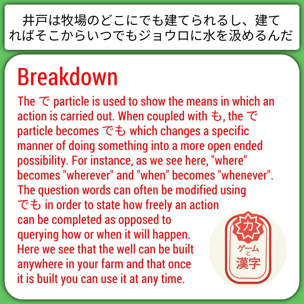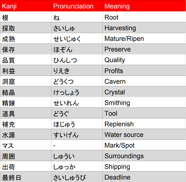 Another downside is that the tasks of farm life are monotonous and habitual. It is easy, especially with the above mentioned time constraints, to develop strong muscle memory in order to complete more and more chores over time. As your abilities as a farmer increase your quick reading ability may also improve but it is less likely that you will bolster new language if you skim read or ignore certain text. The last notable point is the language clarity and kanji level. Even though Stardew has some very mature themes the writing style would suggest that Curious Ape’s target audience was younger. N4 and N3 words you would expect to be written in kanji in other titles often show in hiragana which can actually lead to some reading difficulty at times. The font is also quite unique and can be especially small on the Mobile and Nintendo Switch versions. If you are familiar with the kanji then this can be navigated however searching up finer radicals for kanji you may not know can prove troublesome.
