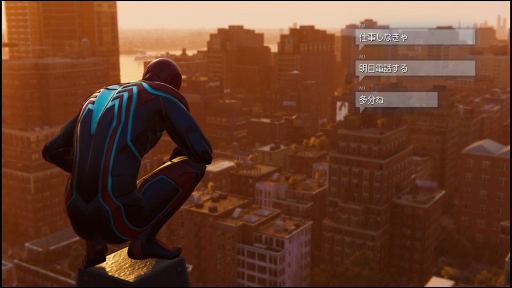 Marvel’s Spiderman is fantastic for experiencing and learning language. The game is a perfect menage-et-trois of story, action and comedy and features so much digestible content that, regardless of your interests, you’ll find something that makes you tick. First and foremost, you can tell that the game devs genuinely knew and loved the source material for Spiderman as the game is packed full of references and each character feels like they came straight out of the comics. The story utilizes patterns and events relating to certain villains and yet somehow manages to remain fresh and keep you on the edge of your seat. This, coupled with top quality voice acting, makes for a game you truly want to get invested and immersed in, and with the density of the world design in this game you can truly get lost in it for hours. I spent what felt like weeks swinging around New York, actually feeling like I was Spiderman, all the while surrounded by constant and entertaining Japanese language.