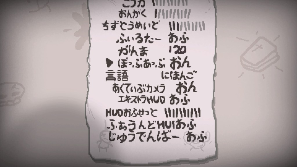 The language options are oddly limited. From the main options menu you can choose between only English and Japanese, which is strange as this is an option reserve typically for games made in Japan and released into the UK and USA. Unfortunately you can’t change the language settings while in a run preventing you from verifying meanings on the go.