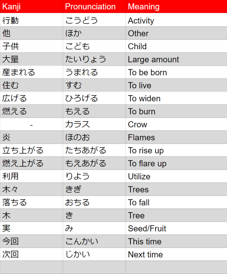 Using the roaring flames set the trees ablaze. Put the fruit that falls from the trees into the hole in order to make it bigger, then put in all the other objects. That’s all for this time. Next time we’ll pick up from “Morsel”.