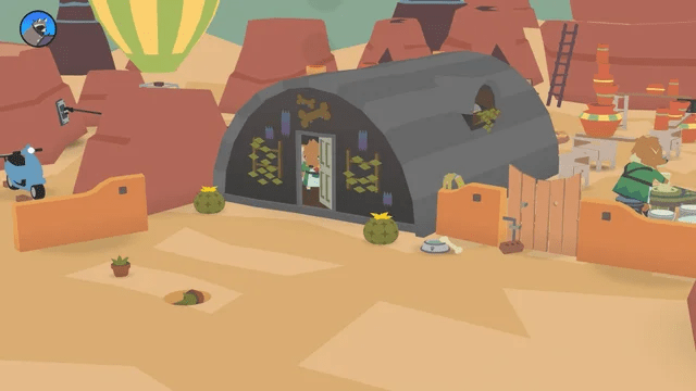 穴の中にどんどん物や生き物を入れていく。色々なものを中に入れていくと、気球に乗った動物がいる。周りにあったストーブを穴に入れると熱気を放つ。気球の下に穴を移動すると、気球が熱で飛行する。家も岩も全ての飲み込む。