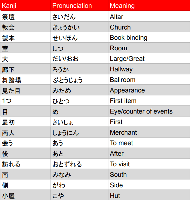 | チャプター4 Chapter 4 | 2個 | ・森の祭壇 ・The forest altar ・教会 ・The church |