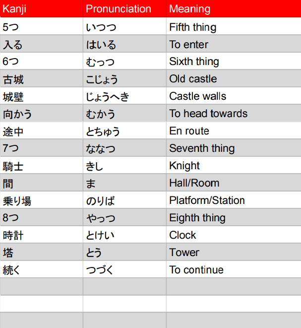 | チャプター9 Chapter 9 | 1個 | ・大廊下 ・The great hallway |
