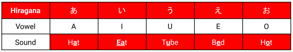 There are some highlighted exceptions which we’ll review shortly, but for the most part it’s as simple as that. One distinct difference between the pronunciations in Japanese compared to English is that the Japanese pronunciations of the 5 vowel sounds is strict and unchanging.