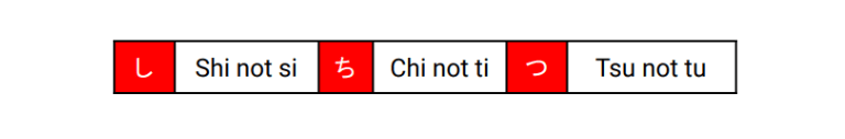 し is read like the “Shee” in “Sheep”, ち is read like the “Chee” in “Cheese” and つ is read like the “Tsu” in “Tsunami”. This means that you will not be able to write a “Si”, “Ti” or “Tu” sound in hiragana.