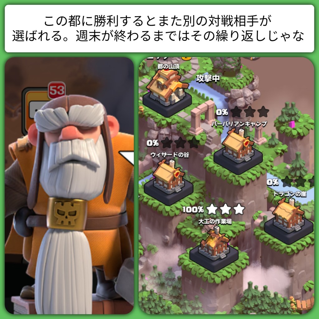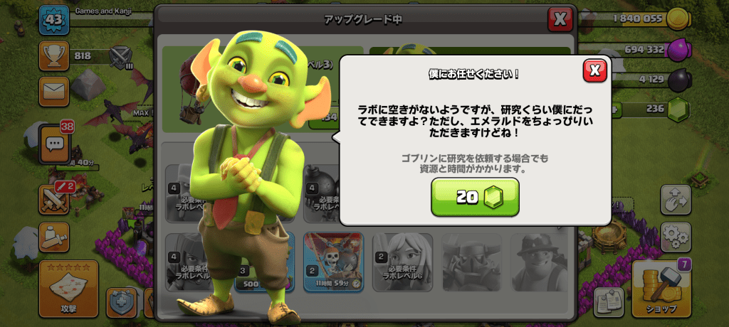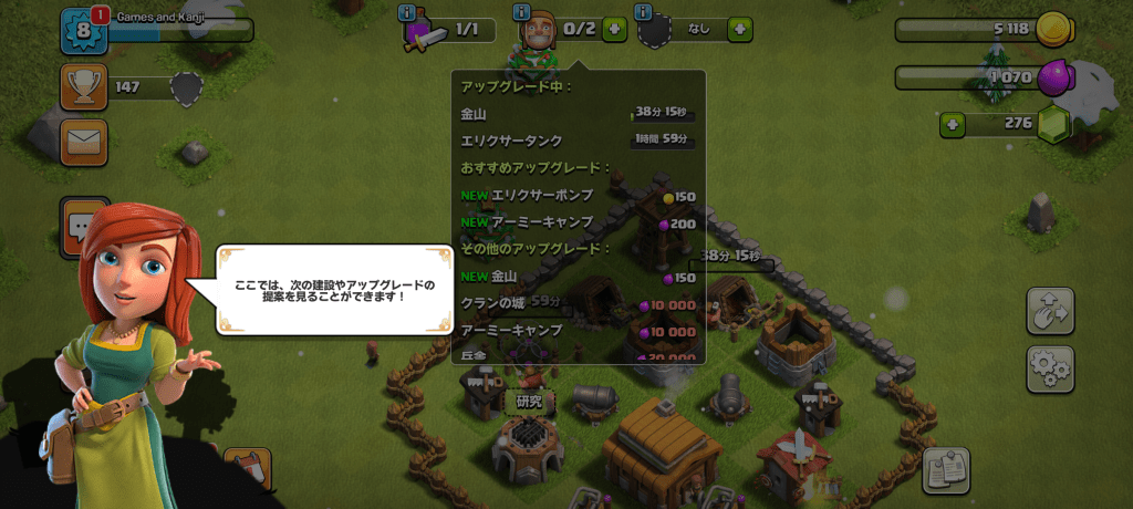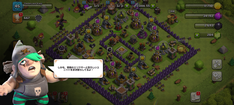 As mentioned, the UI for Clash of Clans is incredibly clean. Text can be found in every corner of every screen. The font is a little unusual and in some cases can be a little bit small depending on your device, which can make discerning radicals of unknown kanji a bit of a difficult task, but the hiragana and katakana are pretty clear so shouldn’t cause any headaches. Your first interaction with any sort of dialogue or description will likely be the narrative. From the start of the game and many milestones throughout a small selection of familiar characters will pop up in the bottom of the screen, lead you around to new locations or functionalities and provide informative breakdowns of the activities needed in your role as chief. These interactions are well paced, feature push-to-proceed text boxes and are not too long or complicated that they might cause any frustration. The only downside is that they aren’t replayable, which would make them increasingly valuable, however this is essentially the norm now so I’m not overly disappointed. It definitely does make it worth your time though to savour these short cutscenes and jot down any new words that might be of interest.