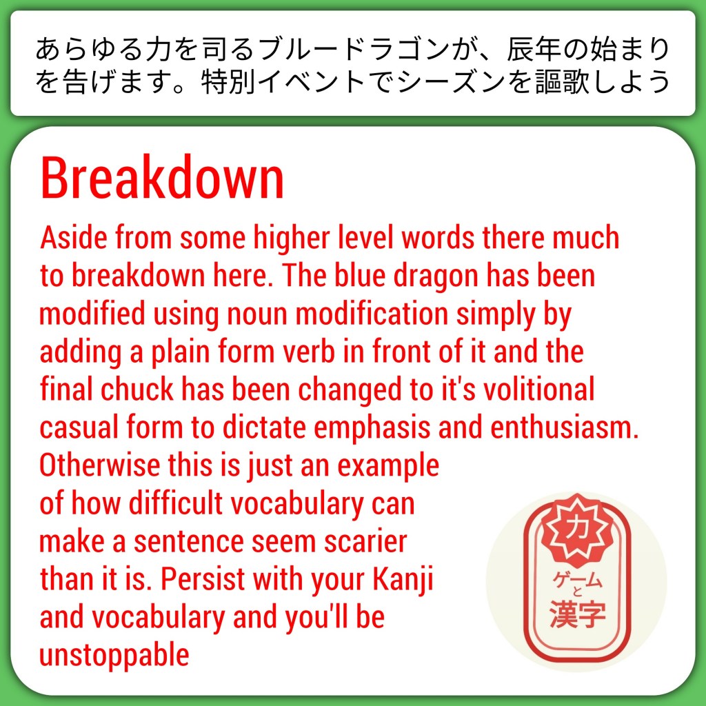 This is made all the better by the language being automatically updated per region based on your language. Again, I hadn’t seen anything like this before, and I’m a sucker for content outside of games that provides more context or opportunities to learn new vocab and grammar. This format in particular proves really effective as it’s made up of a combination of the games own terminology intermingled with natural, native level descriptive speech. As such I would highly recommend visiting this often to catch up on the latest news or content, especially if you could do with the tips as much as I could.